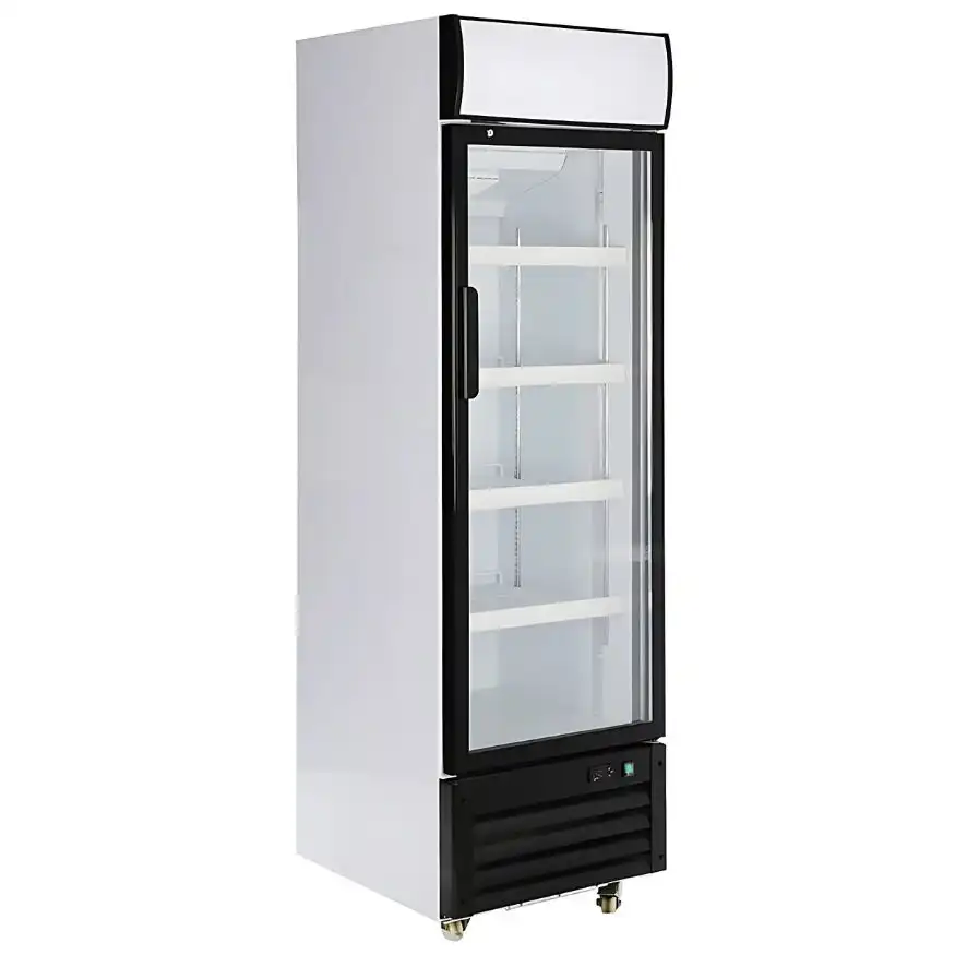 Ψυγείο βιτρίνα Dynamic. Με ρυθμιζόμενα ράφια, φωτισμό LED και ανοιγόμενη πόρτα με αυτόματο κλείσιμο. Διαθέτει ροδάκια για εύκολη μετακίνηση.