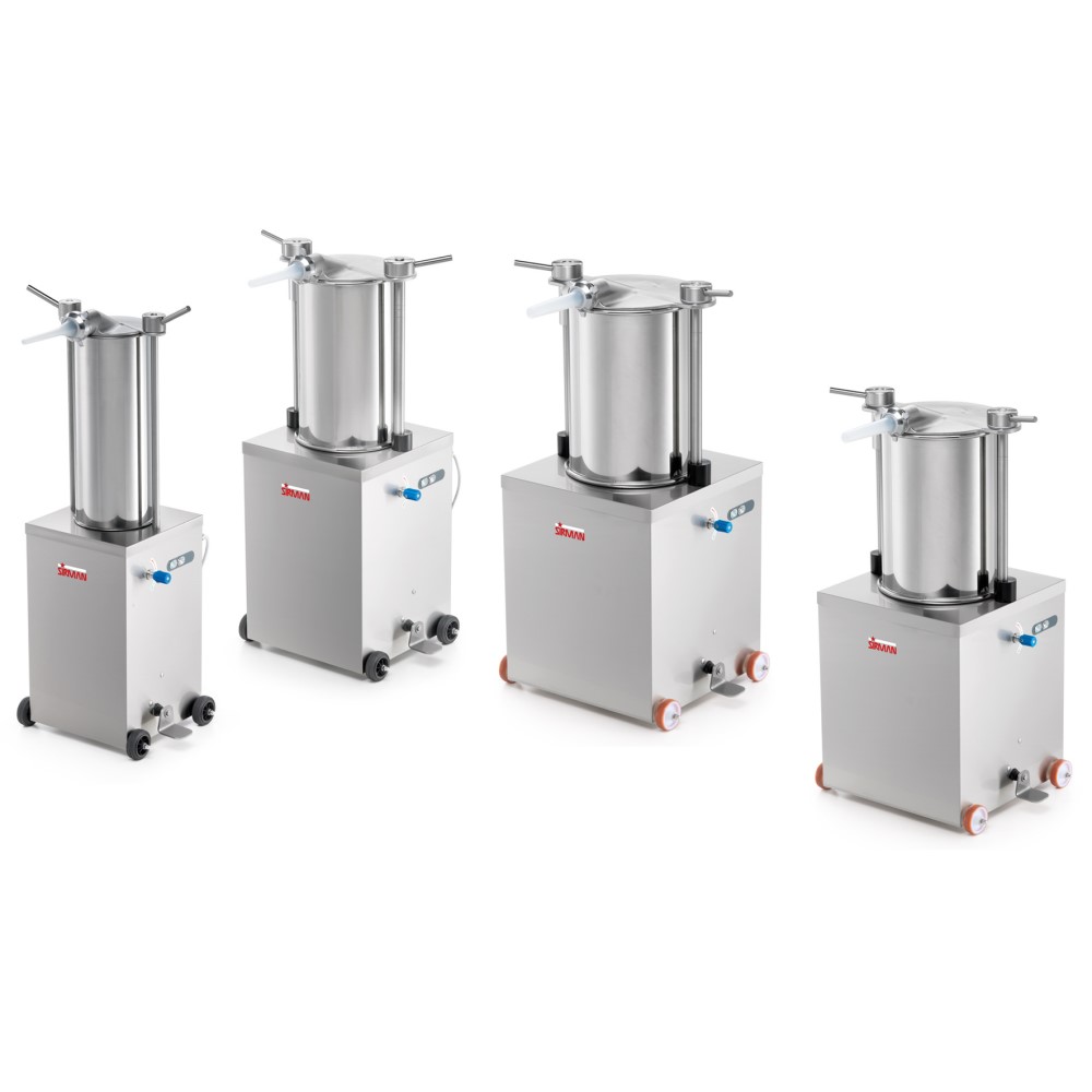 Κατασκευασμένο από ανοξείδωτο ατσάλι, εύκολο στο καθάρισμα, γεμίζει λουκάνικα σε πολύ λίγο χρόνο, οποιουδήποτε είδους κρέατος. Διαθέτει τέσσερα διαφορετικά χωνιά (διαφορετικών διαμέτρων) και πεντάλ λειτουργίας που ελέγχει τη λειτουργία του πιστονιού. Λειτουργεί αυτόματα υδραυλικά με λάδι, έχει ματάκι ένδειξης λαδιού και αποσπώμενο κάδο. Αυτόματη επιστροφή πιστονιού όταν σταματήσει και ισχυρό μοτέρ 2.800 στροφών. Επιδαπέδιο με δύο ρόδες για εύκολη μεταφορά. Ιδανικό για κρεοπωλεία και συσκευαστήρια. Προαιρετικά Inox χωνιά.
