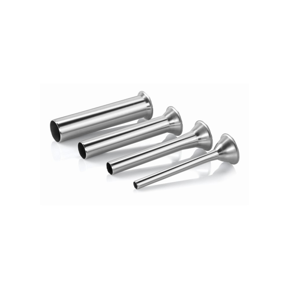 Τέσσερα ανοξείδωτα χωνιά διαφορετικών διαμέτρων.
