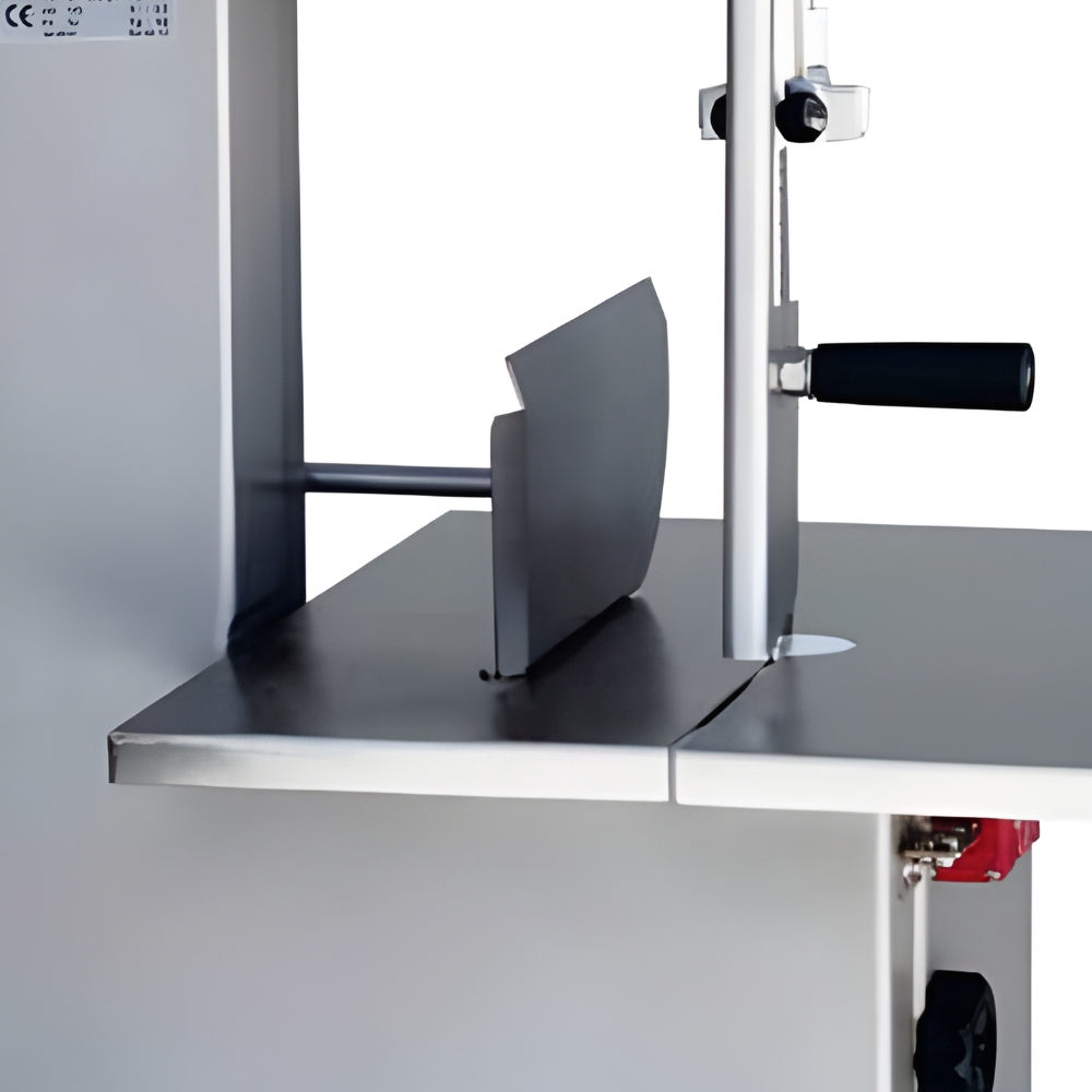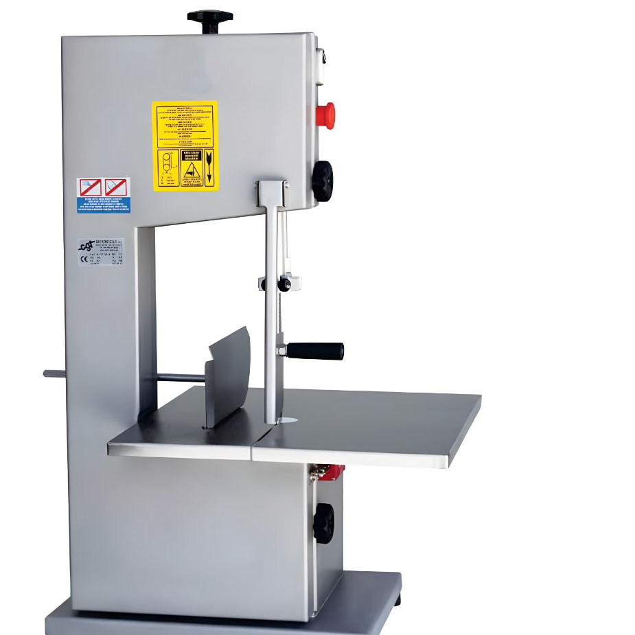 Πριονοκορδέλα CGT. Αποκλειστικά για επαγγελματική χρήση με πάγκο από ανοξείδωτο ατσάλι και ειδική λεπίδα από ανοξείδωτο ατσάλι επίσης. Με μοχλό ώθησης κρέατος, γρήγορη απελευθέρωση της πάνω τροχαλίας και μικροδιακόπτη ασφαλείας.