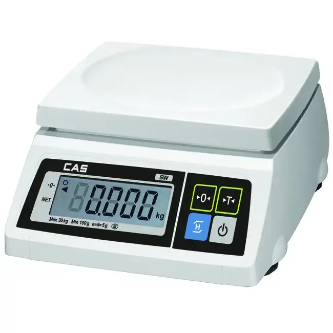 Ζυγός CAS. Αδιάβροχο πληκτρολόγιο αφής για προστασία από σκόνες και υγρά. Διαθέτει τρεις μονάδες μέτρησης βάρους (γραμ., ουγγιές, λίβρες).
