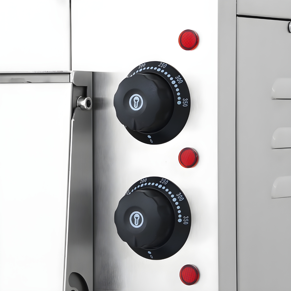 Φούρνος πίτσας Dynamic. Με σύστημα θέρμανσης σε σχήμα U για περισσότερη θέρμανση. Όλο το μηχάνημα είναι κατασκευασμένο εξ’ ολοκλήρου από ανοξείδωτο ατσάλι 201, με πάχος του σκληρού γυαλιού 5 mm.