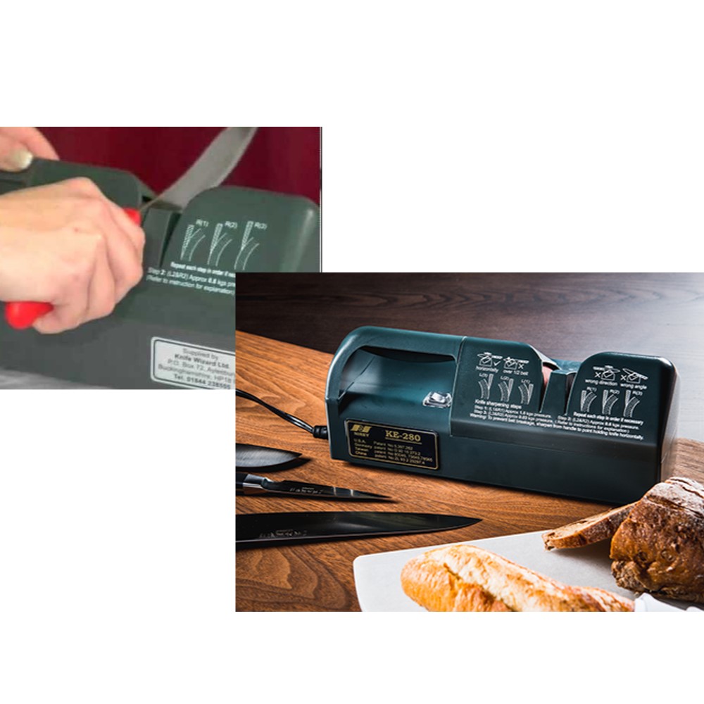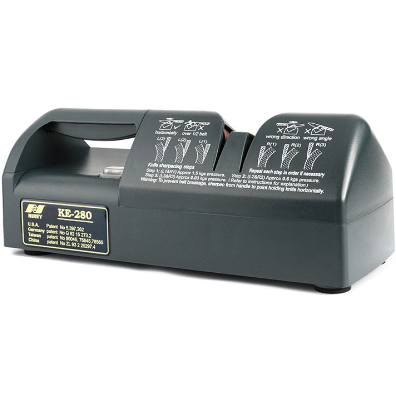 Επαγγελματική συσκευή ακονίσματος μαχαιριών. Ακονίζει όλα τα μαχαίρια, σε όποια κατάσταση και αν βρίσκονται, ακόμα και όταν δεν είναι καθαρά. Δέχεται μαχαίρια με λείες και οδοντωτές λάμες καθώς και μπαλτάδες. Ισχυρό μοτέρ και εύκολο στη χρήση. Διατίθεται με ανταλλακτικό ιμάντα τροχίσματος. Απαραίτητο εργαλείο για κρεοπωλεία, εστιατόρια, ξενοδοχεία, επαγγελματικές κουζίνες και για την βιομηχανία τροφίμων.