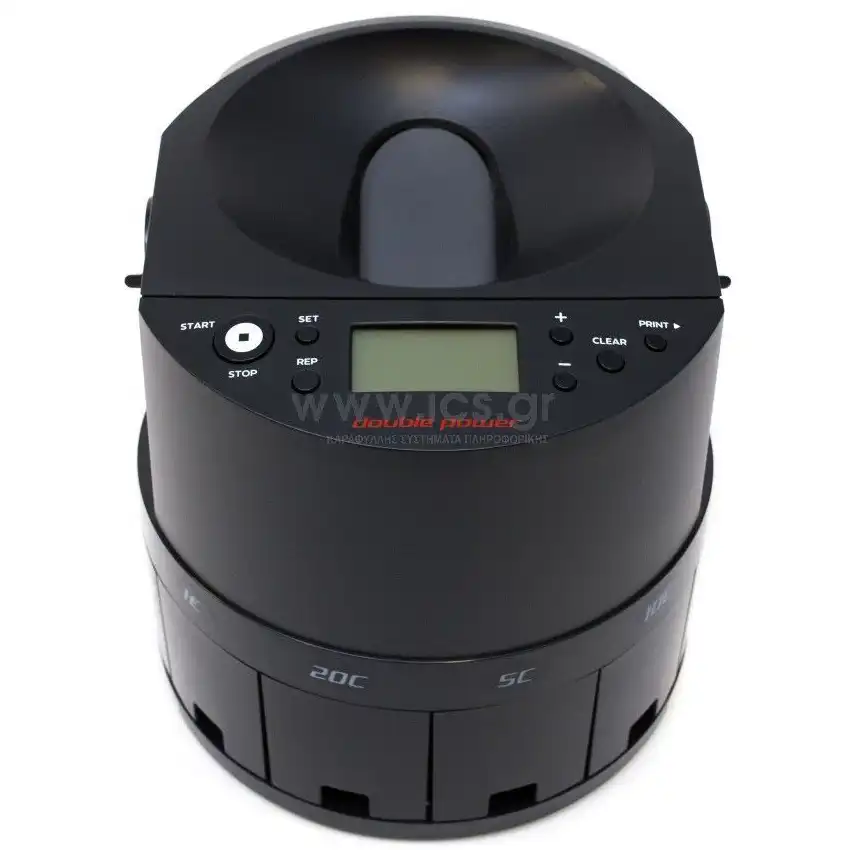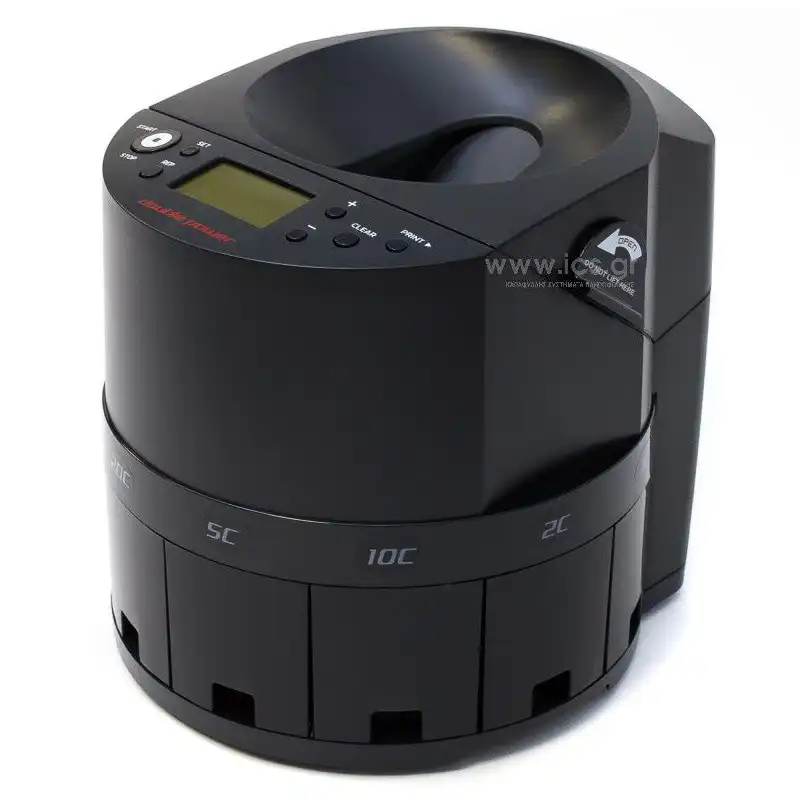 Καταμετρητής κερμάτων ICS. Διαλογή και καταμέτρηση, αυτόματη διακοπή όταν η χοάνη κέρματος είναι κενή για 15”, στιβαρή κατασκευή. Με οθόνη LCD.