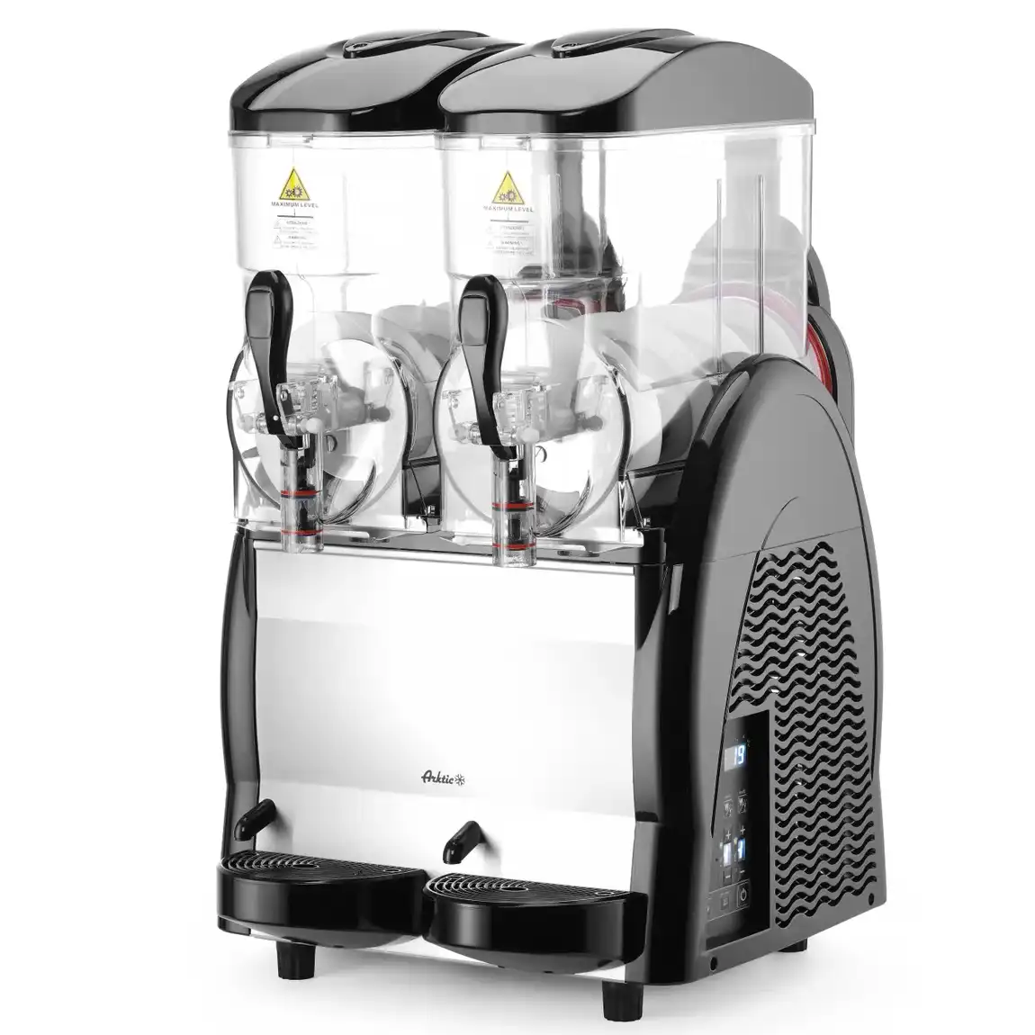 Γρανιτομηχανή Hendi. Δύο δοχεία με βρύση ταχείας ροής και καπάκια που φωτίζονται. Ψηφιακός έλεγχος θερμοκρασίας με λειτουργία τόσο για παγωμένο ρόφημα όσο και για γρανίτα.