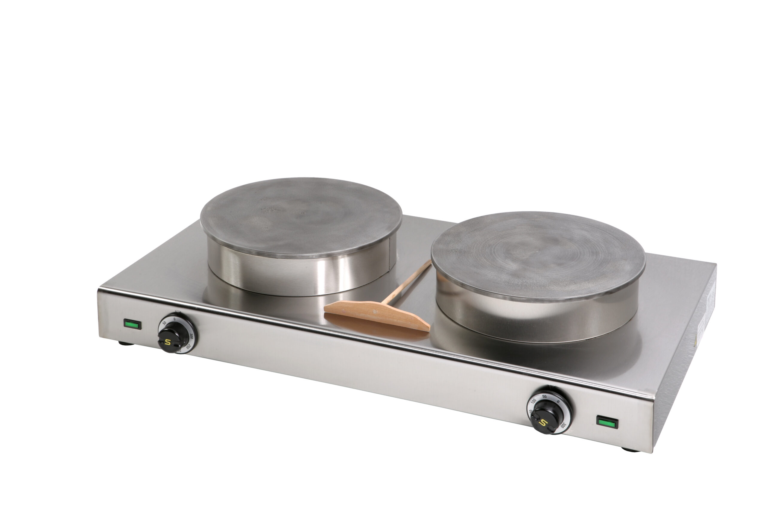 υτή η σειρά από ηλεκτρικές κρεπιέρες αποτελείται από δυο μοντέλα που φέρουν μια ή δυο εστίες διαμέτρου 35 cm. Κάθε εστία θερμαίνεται από ανεξάρτητη αντίσταση 2,5 kw η οποία ελέγχεται από δικό της ανεξάρτητο θερμοστάτη ενώ διαθέτει ενδεικτική λυχνία για την επιτήρηση της λειτουργίας της.