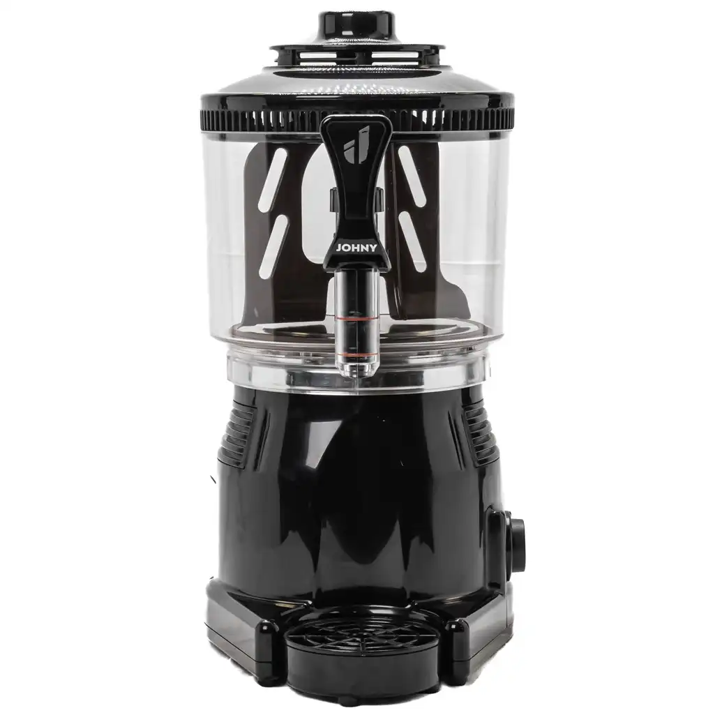 Σοκολατιέρα Johny. Διαθέτει διαφανή αποσπώμενο κάδο από πολυκαρβονικό μεγάλης αντοχής κατάλληλο για τρόφιμα, για εύκολο καθαρισμό.Βρυσάκι απ’ όπου ο χρήστης μπορεί εύκολα να προμηθεύεται ζεστή σοκολάτα, το οποίο είναι εργονομικά σχεδιασμένο ώστε να αποσπάται και να καθαρίζεται εύκολα.